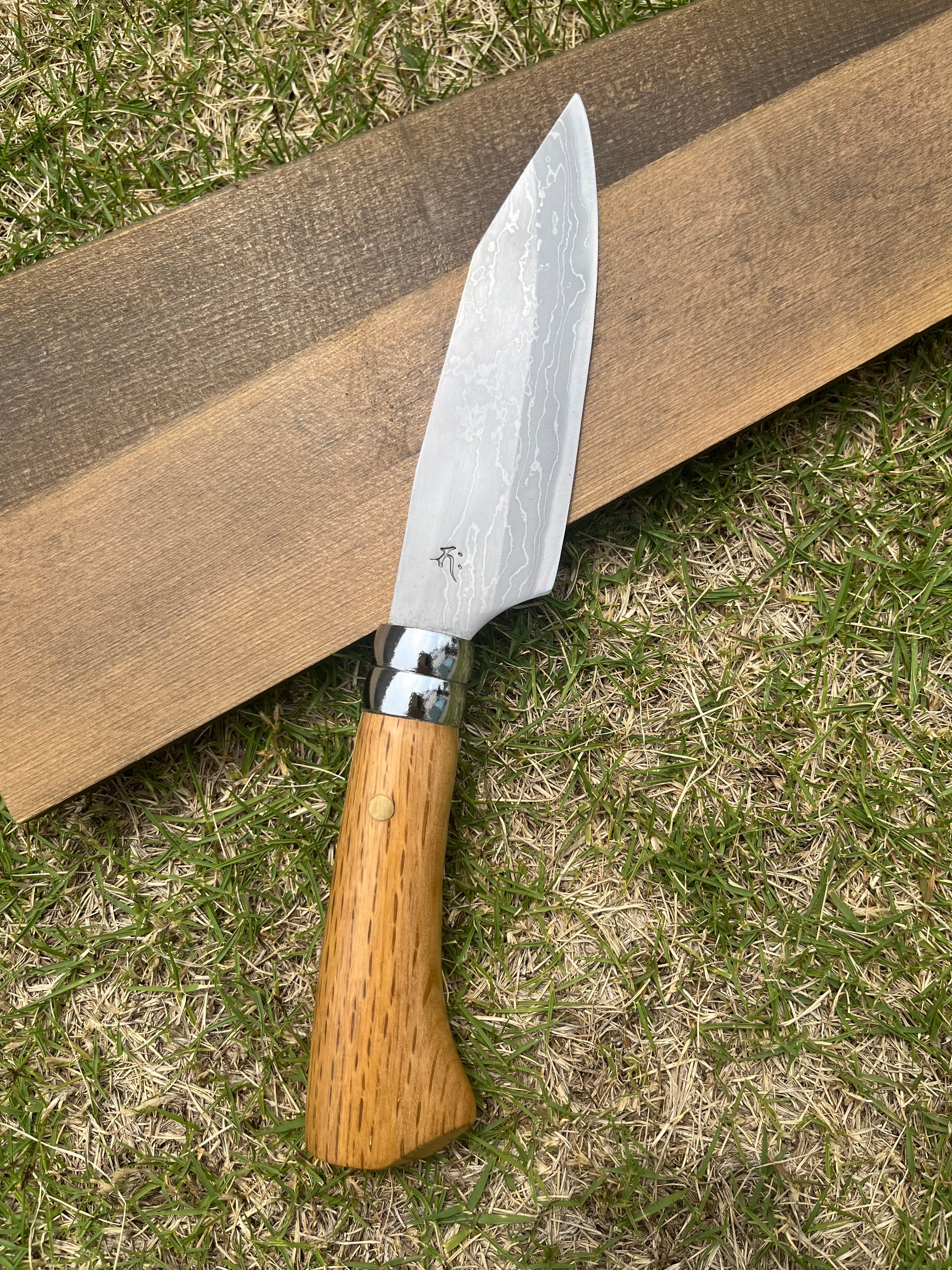 名匠レッドオルカが日本の伝統技術を駆使し、作り上げる現代的な美しさを併せ持つ特別なナイフです。15層から成る割込み式のブレードは、圧倒的な切れ味を誇り、青入仕上げが施されることで高級感が漂います。この一品は、実用性と美しさを兼ね備えた真の逸品です。 ■切れ味と耐久性の両立! 赤鯱 中出刃は、魚の処理や料理に最適で、さまざまなシーンで活躍します。手にしっかりフィットするグリップは、使いやすさを向上させ、長時間の使用でも快適です。