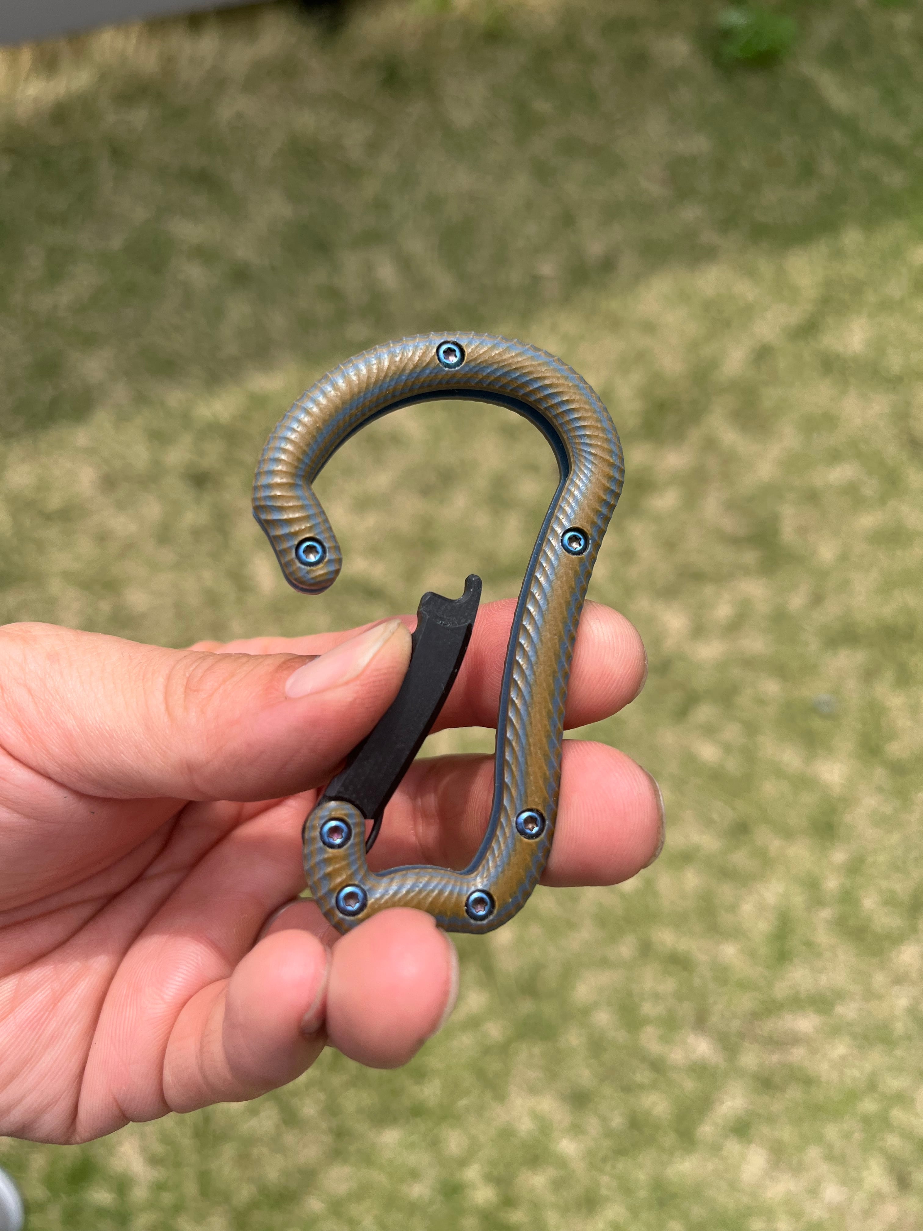 G10の中でもデザイン性の高い素材を使用しており、キャンプや登山などのアウトドアシーンだけでなく、バッグやキーの整理整頓にも最適です。軽量で持ち運びやすく、いつでもどこでも活躍します。