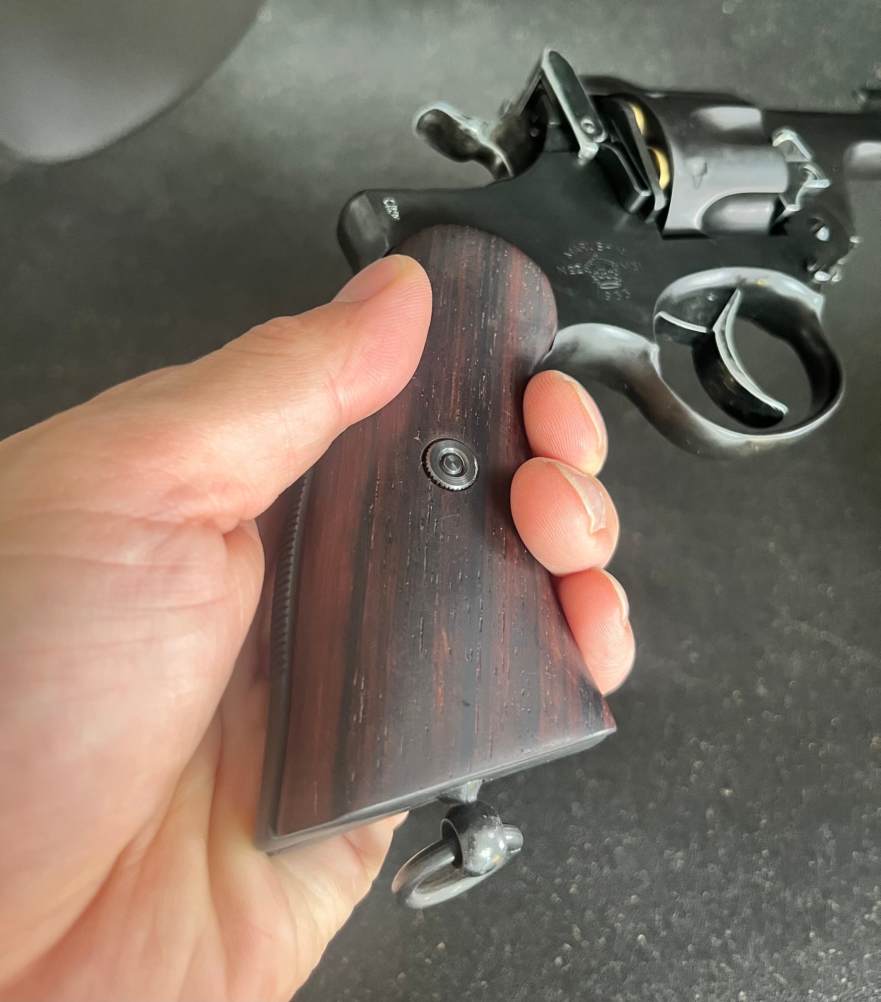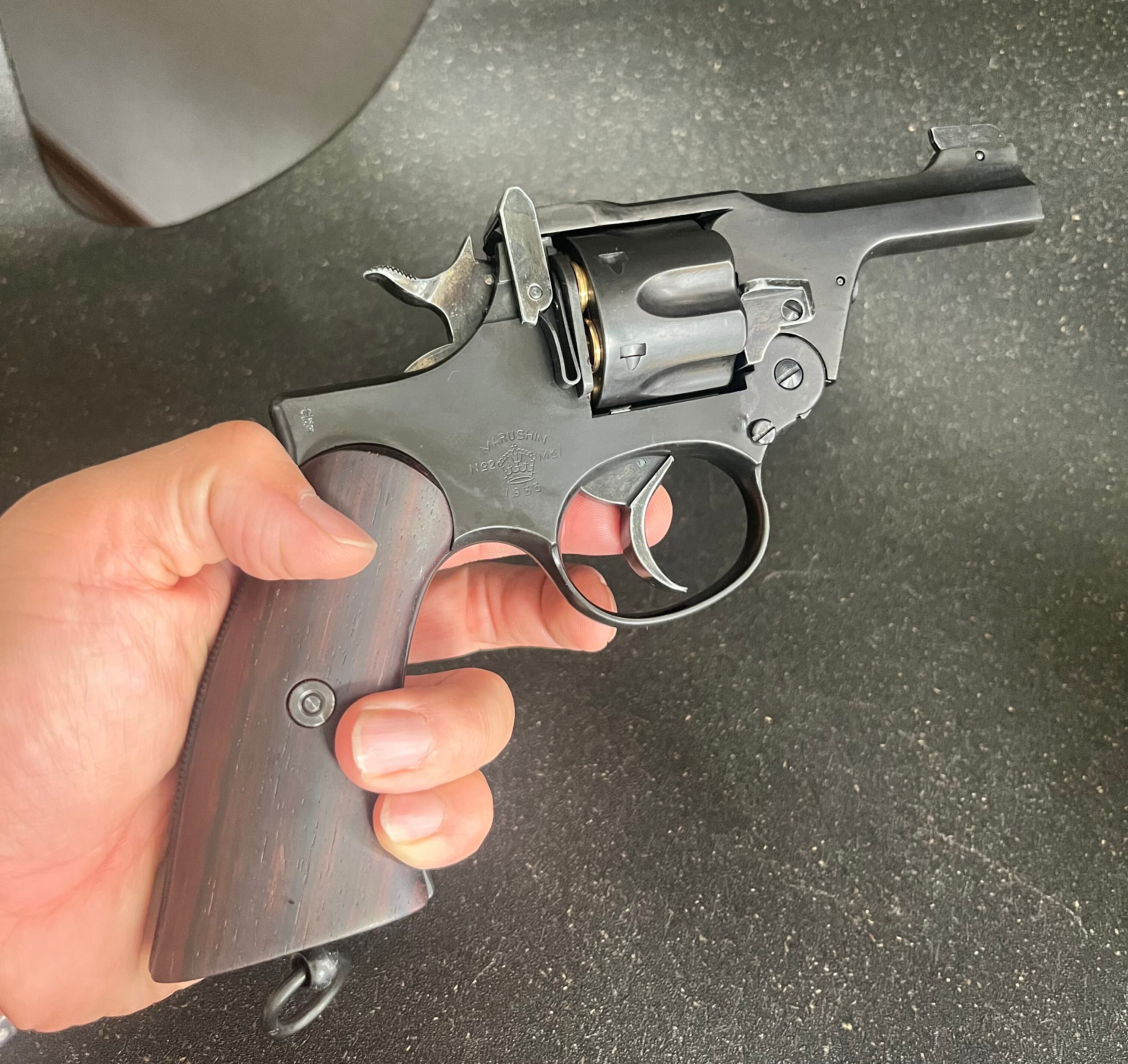 カスタムフォールディングナイフの世界的作家として知られる宮前敏行氏が制作したカスタムモデルガン。ムスカ大佐モデルでも知られるエンフィールドを組立からペイントまで全て宮前氏が行った作品です。古びた鉄をペイントで再現した古美仕上げに、実銃のグリップでも定評がある極上のローズウッドがつけられています。さすがはフォールディングナイフの頂点をとった作家であり、施工技術はさすがのひとこと。グリップの手に馴染む質感は高級カスタムナイフと遜色ありません。宮前氏は作品作りを休止しておりますので、大変に希少なカスタム作品。この機会を逃せば入手は極めて困難なコレクションです。(このカスタムガンは宮前氏より入手し、未使用で保管されていたものですが、長期間動作確認を行っておりませんので、動作保証な無しにさせていただきます。)